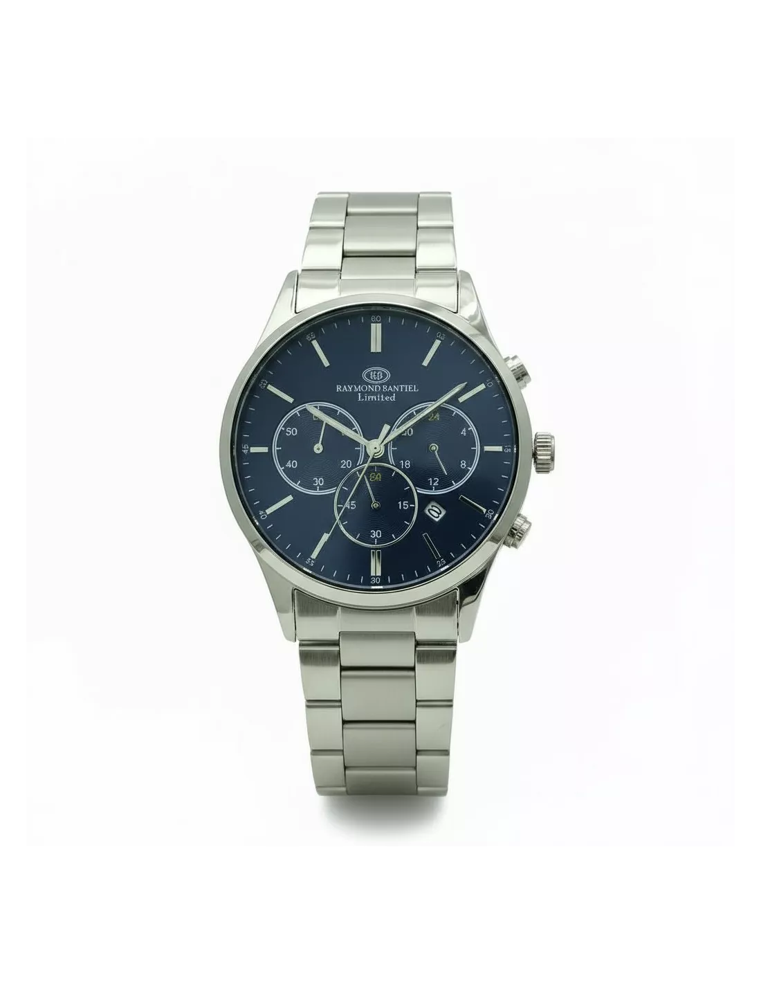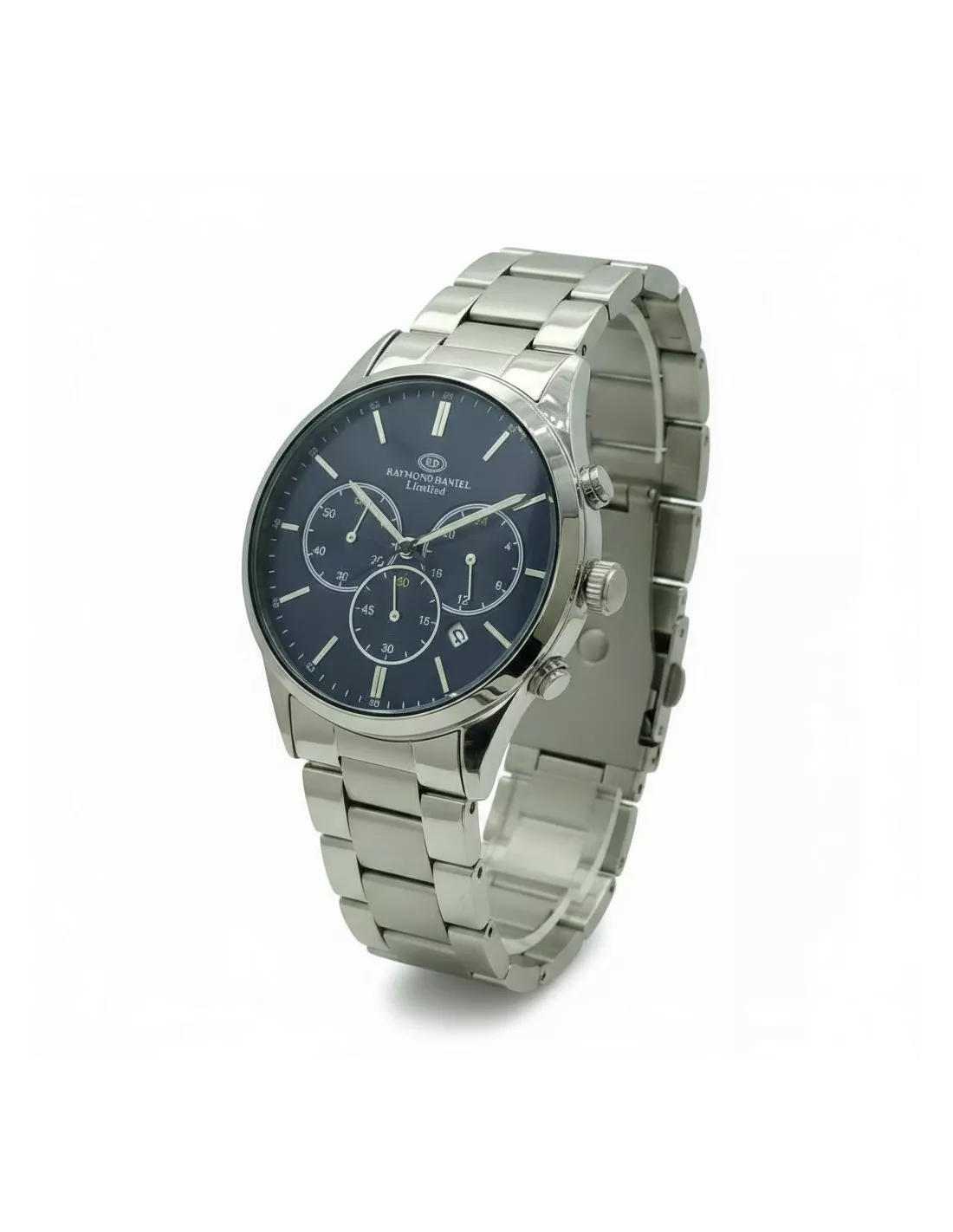 Montre Raymond Daniel Limited pour homme, un chronographe élégant avec un boîtier et un bracelet en acier inoxydable. Son cadran Bleu est doté de trois sous-cadrans et d'un guichet de date, offrant une fonctionnalité exceptionnelle.