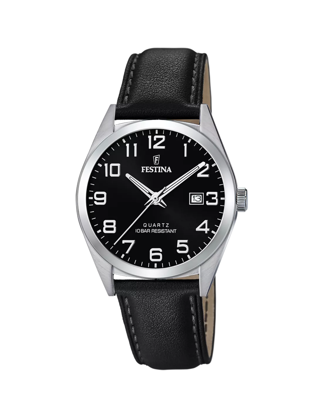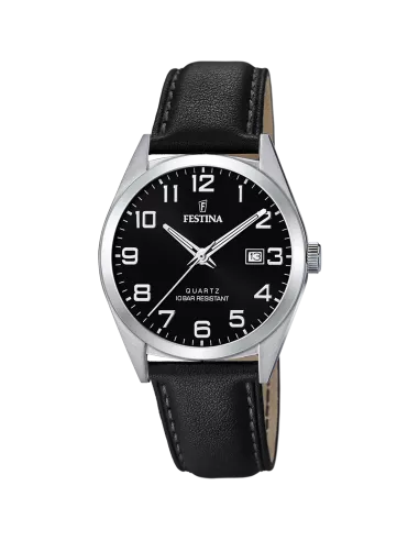 Montre Homme Festina Classics F20446/3 Acier Bracelet Cuir Noir Cadran Noir