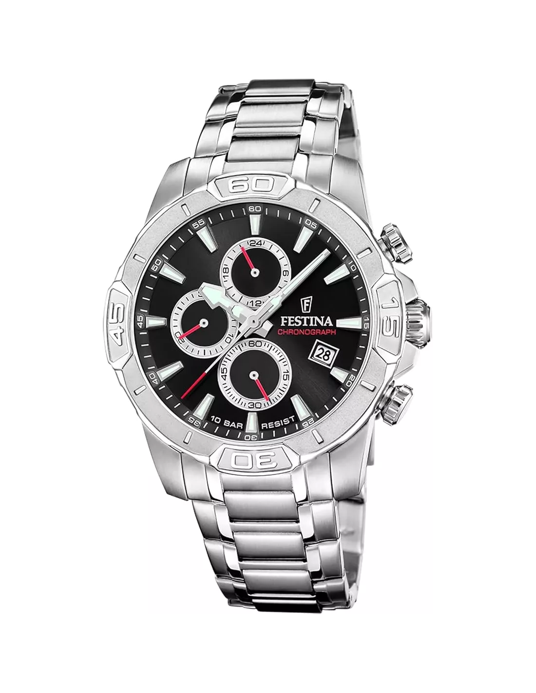 Conçue pour l'action et le style. La Montre Homme FESTINA F20541/1 est une pièce horlogère fiable et performante. Son chronographe précis, son boîtier robuste en acier inoxydable et son étanchéité à 10 ATM en font le compagnon idéal pour l'homme actif. Un design sportif et affirmé, typique de l'excellence FESTINA.